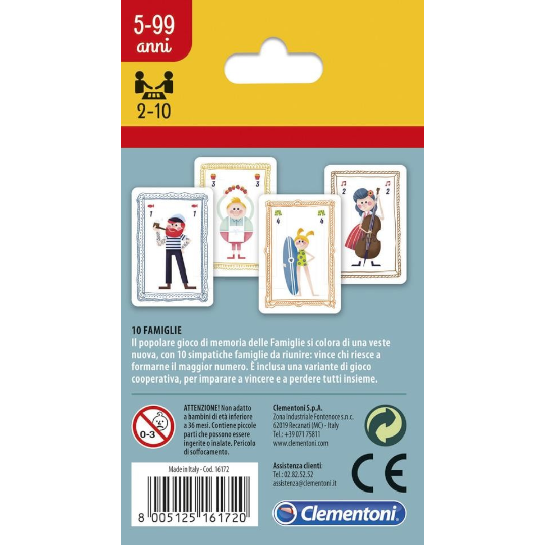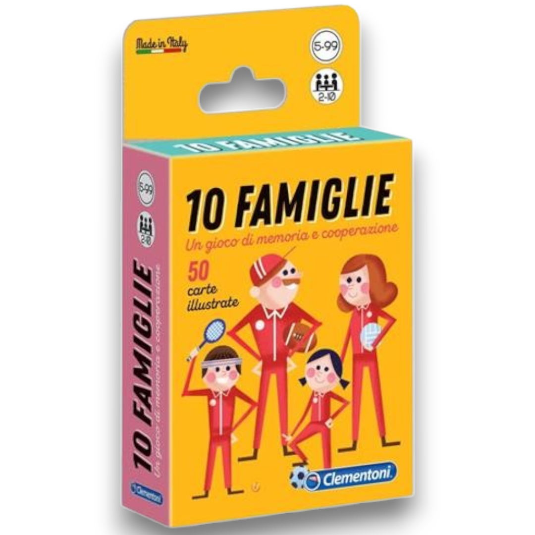 10 Famiglie Clementoni è un mazzo di 50 carte illustrate progettato per stimolare memoria e cooperazione. Da 2 a 10 giocatori, 10 Famiglie Clementoni è perfetto per tutte le età, dai 5 ai 99 anni, rendendo ogni partita un'esperienza divertente e inclusiva.