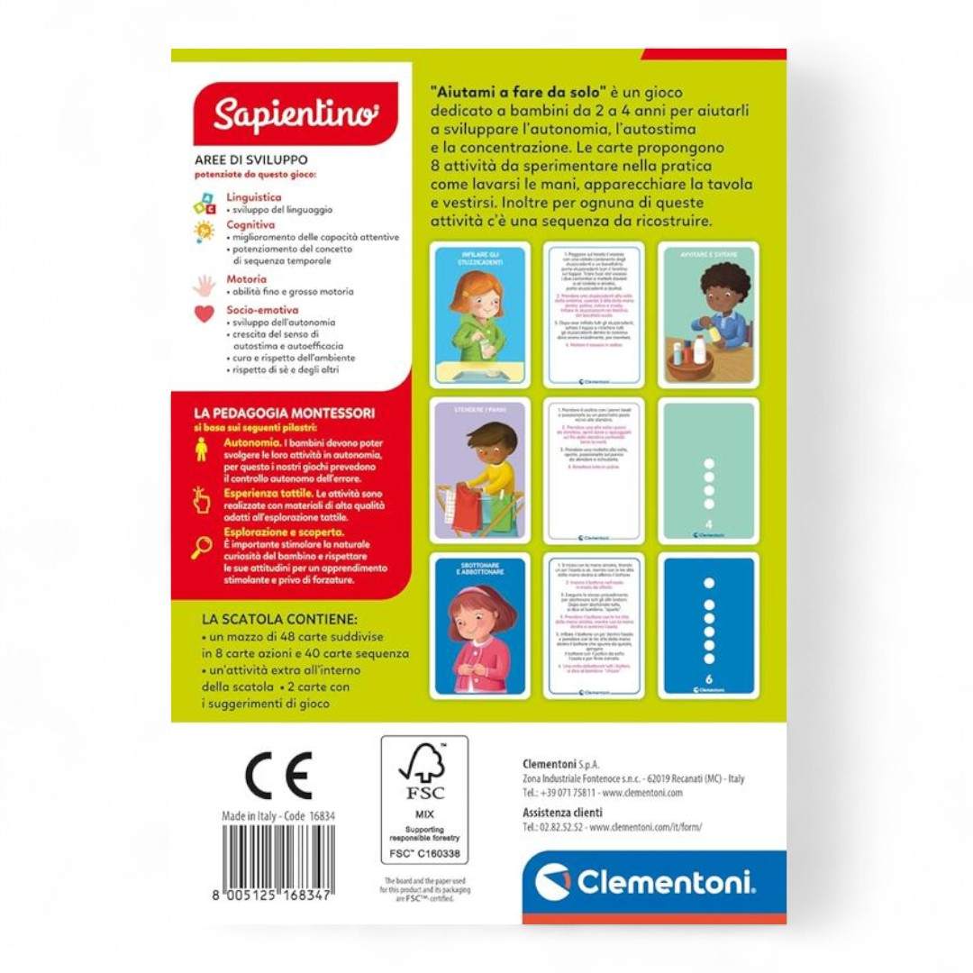 Scopri Aiutami a Fare da Solo Sapientino, il gioco educativo Clementoni basato sul metodo Montessori. Con Aiutami a Fare da Solo Sapientino, i bambini da 2 a 4 anni imparano a svolgere piccole attività quotidiane grazie a 48 flash cards illustrate.