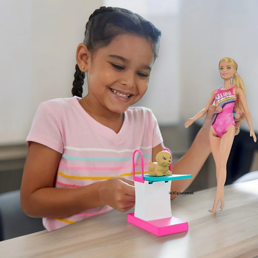 La Barbie Nuotatrice GHK23 è il giocattolo ideale per i bambini che adorano il nuoto e le avventure acquatiche. Vestita con un elegante costume da bagno, questa Barbie è pronta per tuffarsi e nuotare grazie alle sue articolazioni mobili che permettono di simulare movimenti realistici. La Barbie Nuotatrice GHK23 porta il divertimento in piscina, nella vasca da bagno o anche a terra, offrendo infinite possibilità di gioco.