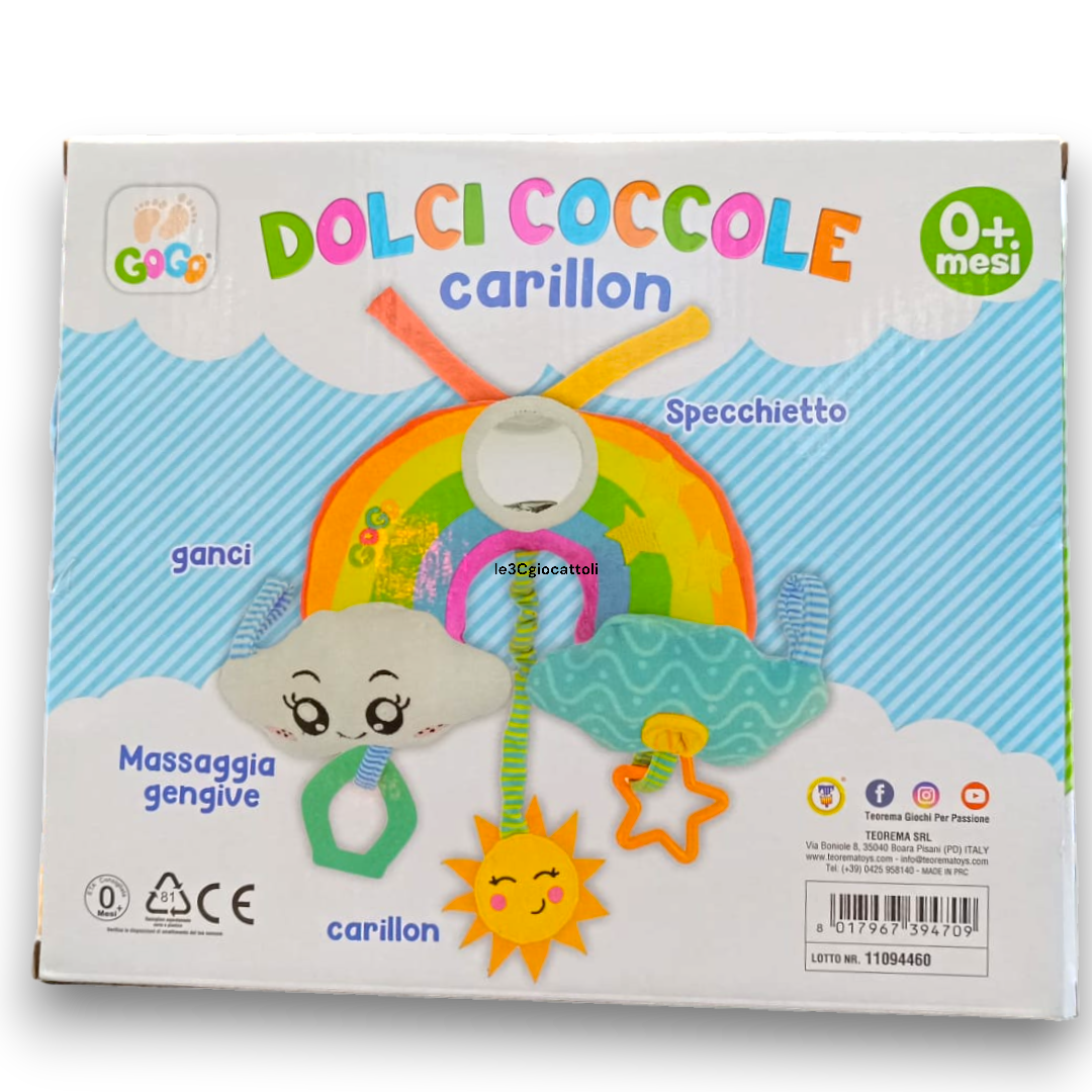 Il Carillon Arcobaleno Dolci Coccole di Teorema è il giocattolo perfetto per cullare i neonati con melodie rilassanti e colori vivaci. Progettato per bambini dai 0 mesi in su, questo carillon è un meraviglioso compagno di nanna che crea un'atmosfera serena e rassicurante. Il Carillon Arcobaleno Dolci Coccole emette una dolce melodia che aiuta i neonati a rilassarsi e ad addormentarsi più facilmente.