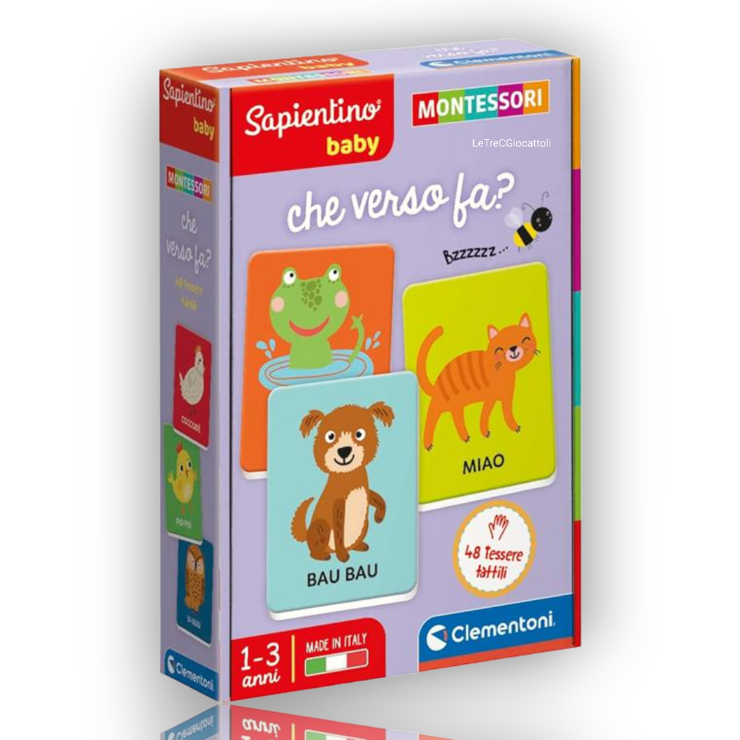 Sapientino Baby Che verso Fa Montessori è un gioco divertente e educativo che aiuta i bambini a sviluppare le loro capacità cognitive e sensoriali. Età di riferimento 1-3 anni