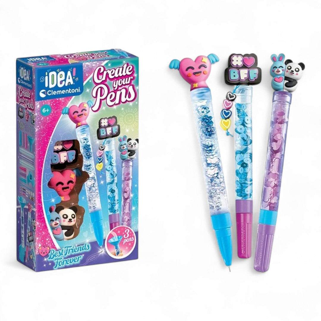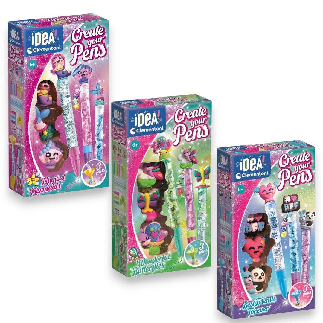 Dai spazio alla fantasia con Create your Pens, il kit creativo Clementoni per realizzare 3 penne uniche e divertenti. Con Create your Pens, ogni bambina può decorare le proprie penne scegliendo tra tanti colori e accessori a tema.
