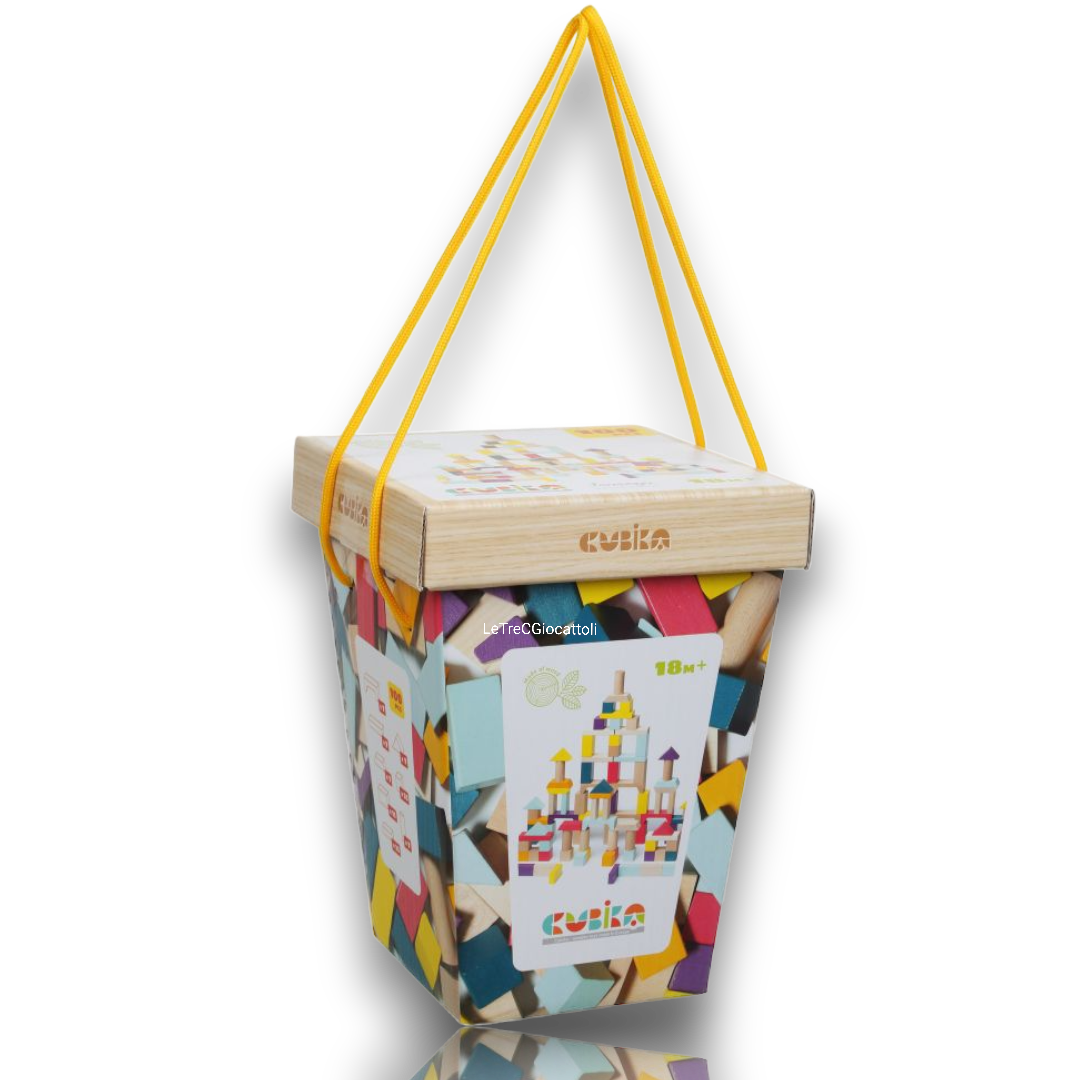 Con Cubika Costruzioni legno 50 pezzi i bambini possono imparare a impilare, incastrare e costruire, sviluppando la coordinazione mano-occhio e l'immaginazione.