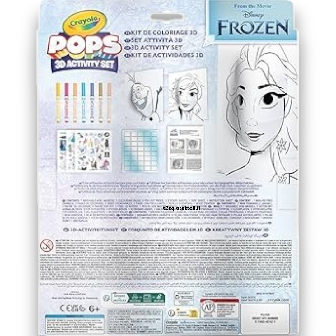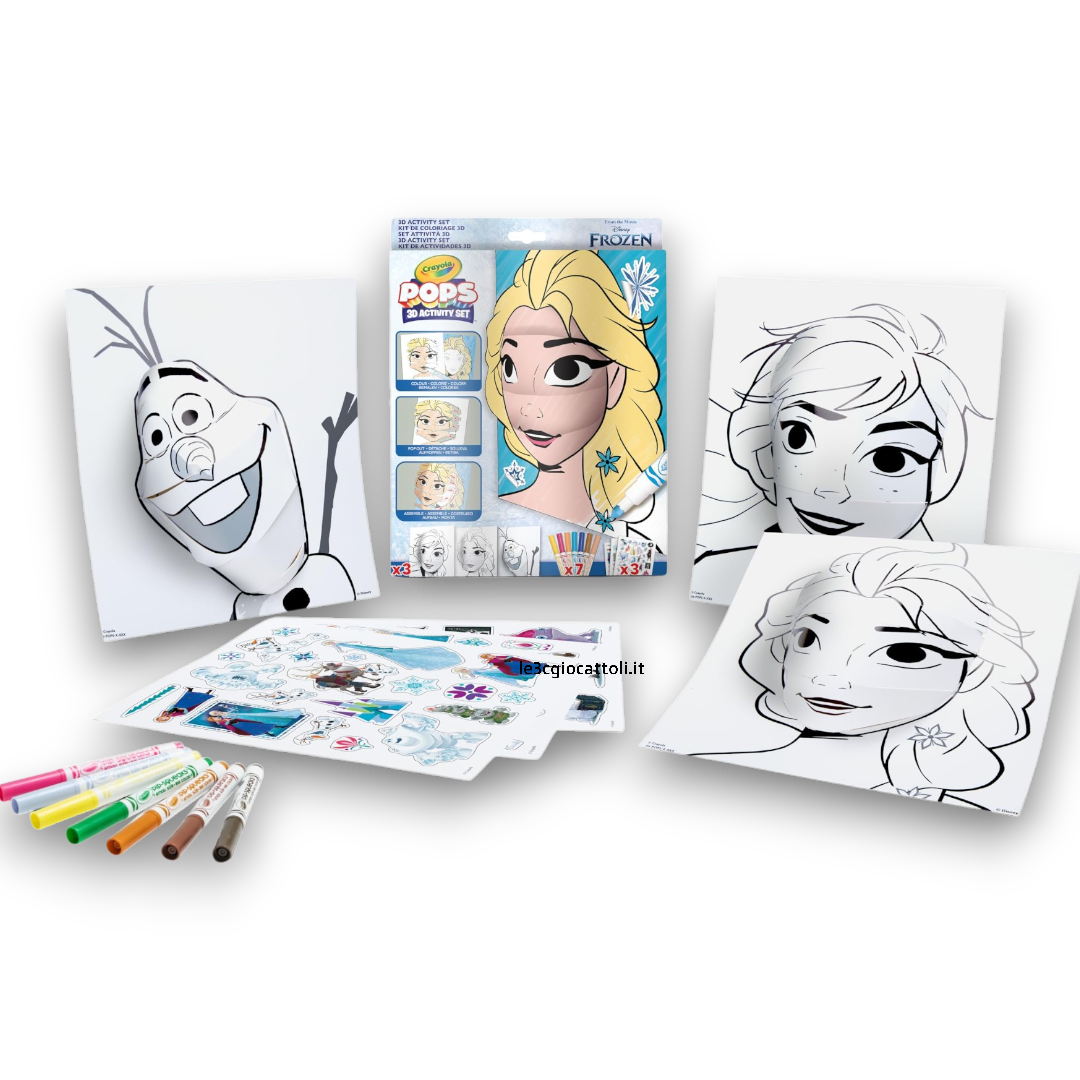 Il Disney Frozen 3D Crayola è l'ideale per i giovani artisti dai 6 anni in su. Questo set Disney Frozen 3D Crayola include 7 mini pennarelli lavabili, 3 disegni da colorare e 3 pagine pop-up per portare le scene di Frozen alla vita.