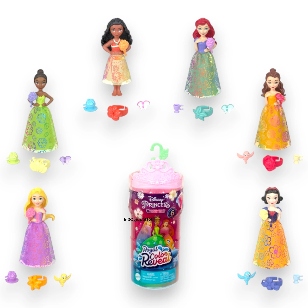 Il Disney Princess Royal Color Reveal Surprise di Mattel è l’esperienza magica che ogni fan delle principesse Disney desidera. All’interno di ogni confezione Disney Princess Royal Color Reveal Surprise, si nasconde una principessa Disney misteriosa alta 9 cm e accompagnata da 6 sorprese uniche da scoprire. Per rivelare la tua principessa, basta immergere la bambolina nell'acqua e guardare come il colore si dissolve, rivelando il personaggio. Con il Disney Princess Royal Color Reveal Surprise, ogni apertura è un momento di pura emozione.