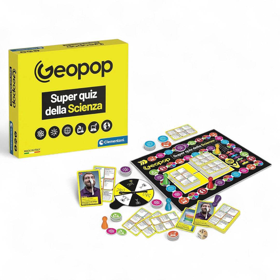 Con Geopop Super Quiz della Scienza si gioca in compagnia, imparando in modo dinamico e divertente. Aggiungi Geopop Super Quiz della Scienza alla tua raccolta di giochi educativi Clementoni!
