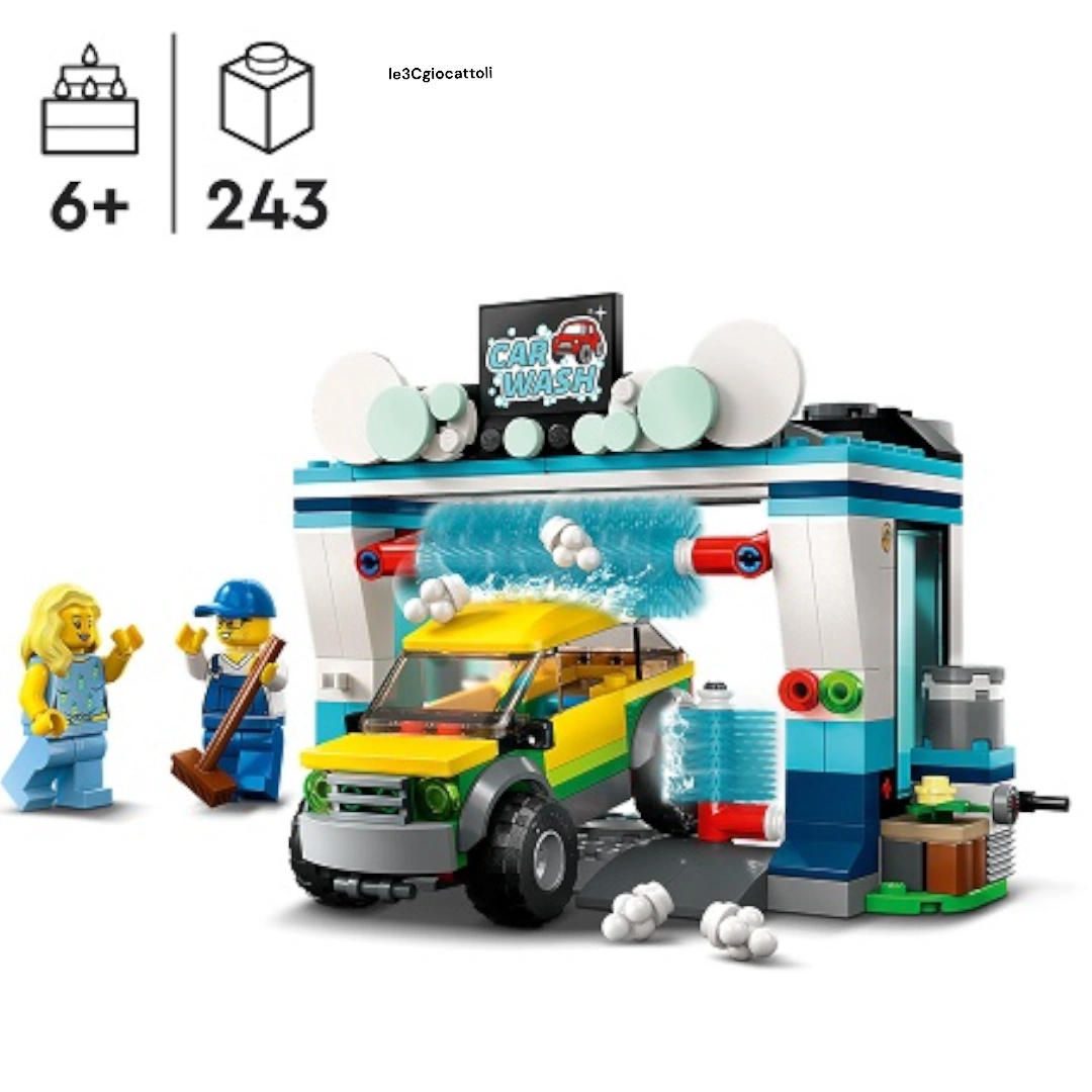 Il LEGO City 60362 Autolavaggio è un set entusiasmante progettato per bambini dai 6 anni in poi, composto da 243 mattoncini. Questo fantastico set permette ai piccoli costruttori di creare un autolavaggio realistico e dettagliato, perfetto per vivere divertenti avventure urbane. Il LEGO City 60362 Autolavaggio include tutte le caratteristiche essenziali, come rulli mobili, spazzole rotanti e una stazione di pulizia, offrendo un'esperienza di gioco dinamica e interattiva.