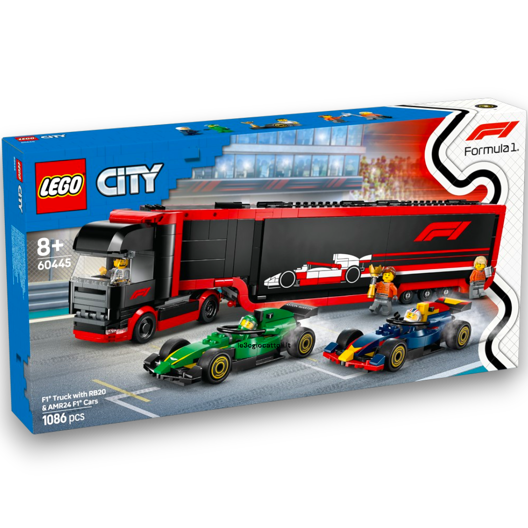 Il Lego City 60445 Camion F1 con Vetture Aston Martin e Red Bull è il set perfetto per gli appassionati di velocità e costruzioni. Con ben 1086 pezzi, il Lego City 60445 Camion F1 con Vetture Aston Martin e Red Bull offre un’esperienza di montaggio entusiasmante, ideale dai 8 anni in poi.