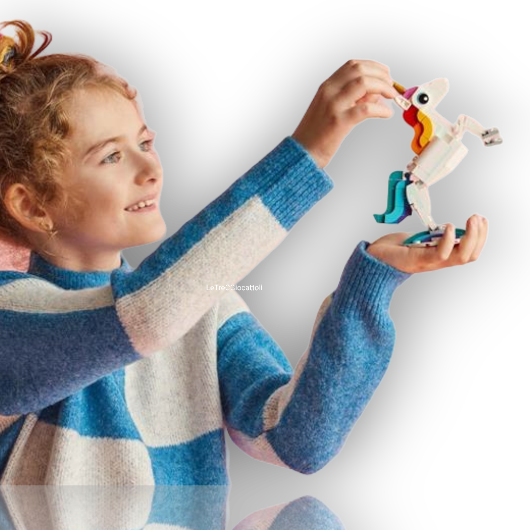 - Costruzioni Multiple: Il set Lego Creator 31140 Unicorno magico permette di costruire tre diverse creature: un unicorno magico, un pavone colorato e una giraffa giocosa. Questo offre ai bambini la possibilità di scegliere e cambiare tra diverse creazioni, mantenendo il gioco sempre nuovo e interessante.