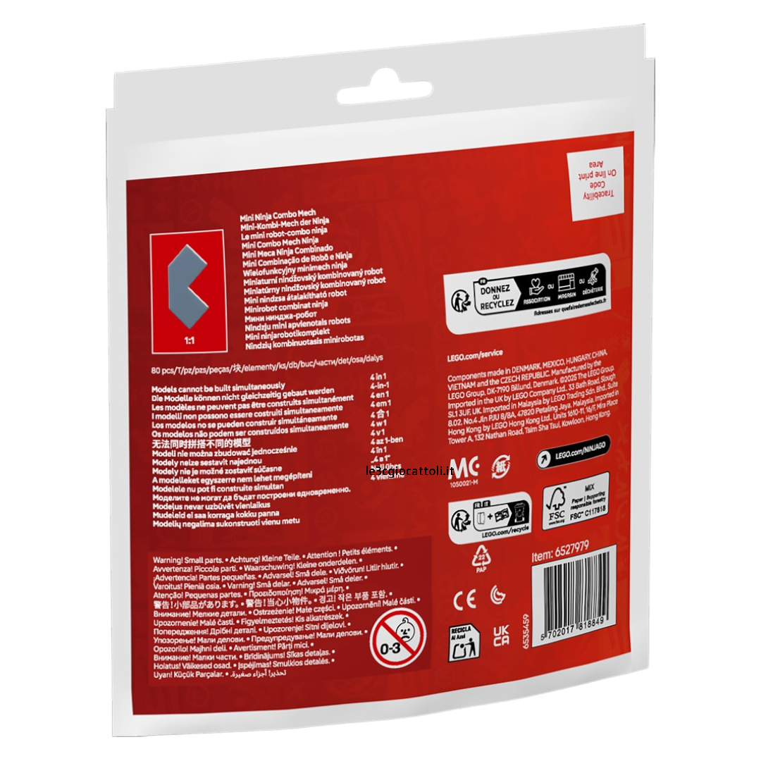 Il Lego Ninjago 30699 Mini Ninja Combo Mech è l'ideale per giovani costruttori dai 7 anni in su. Questo set Lego Ninjago 30699 Mini Ninja Combo Mech composto da 80 pezzi, permette di costruire un mech dinamico e pieno di dettagli. Con il Lego Ninjago 30699 Mini Ninja Combo Mech, i bambini possono sviluppare le loro abilità di costruzione e stimolare la creatività.