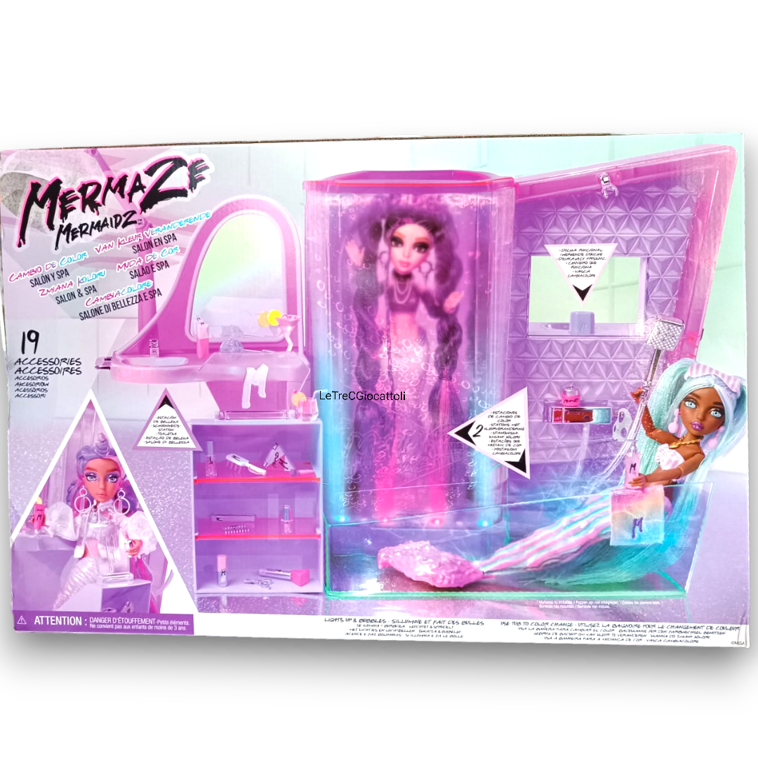 Ideale per bambini curiosi e appassionati di gioco di ruolo, il MERMAZE MERMAIDZ SALON apre un universo di spa sottomarina dove il benessere regna sovrano.