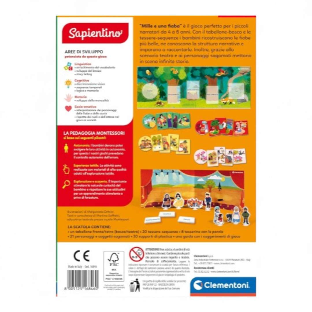 Stimola la fantasia con Mille e una Fiaba, il gioco educativo Clementoni ispirato al metodo Montessori. Con Mille e una Fiaba, i bambini da 4 a 6 anni imparano a creare e raccontare storie in autonomia. Mille e una Fiaba favorisce lo sviluppo del linguaggio, dell’immaginazione e della sequenza logica. Grazie al metodo Montessori, Mille e una Fiaba incoraggia un apprendimento attivo e creativo. Realizzato con materiali sicuri e di qualità, Mille e una Fiaba è ideale per il gioco didattico in casa o a scuola. Aggiungi Mille e una Fiaba alla tua collezione di giochi educativi e narrativi!