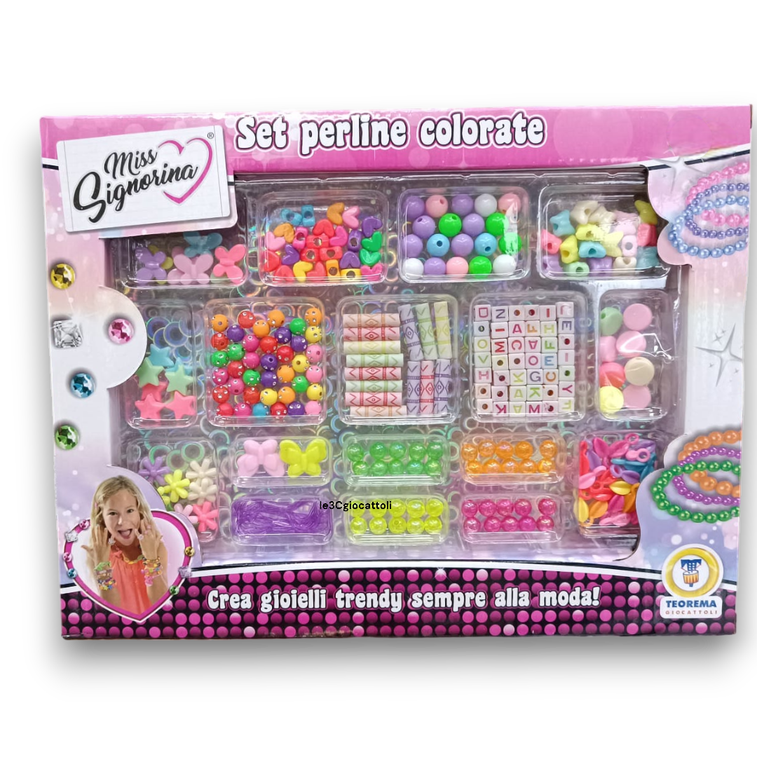 Il Miss Signorina Set Perline Colorate è un kit creativo perfetto per realizzare gioielli unici e personalizzati in modo facile e divertente. Con il Miss Signorina Set Perline Colorate, le bambine possono creare braccialetti, collane e anelli coloratissimi, stimolando fantasia e manualità.