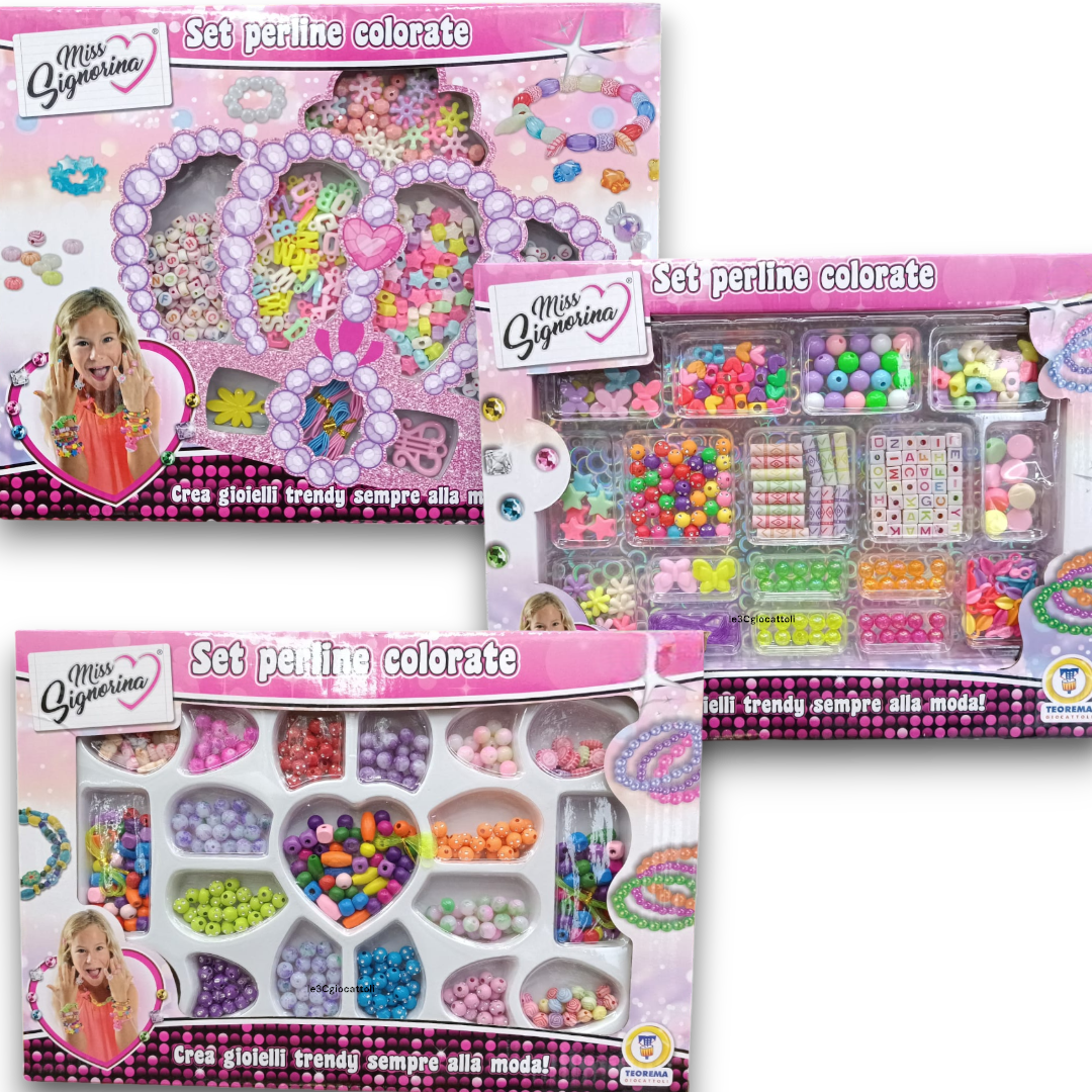 Ogni Miss Signorina Set Perline Colorate contiene una grande varietà di perline e fili elastici per combinazioni sempre nuove e originali. Il Miss Signorina Set Perline Colorate aiuta a sviluppare coordinazione, precisione e senso estetico, trasformando il gioco in un’attività creativa e rilassante.