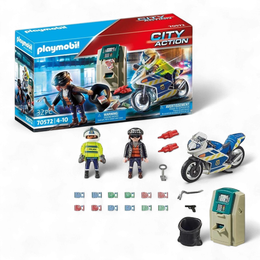 Il Playmobil City Action 70572 Inseguimento in Moto include due personaggi, una moto della polizia, un veicolo dei ladri e tanti accessori per arricchire la scena. Realizzato con materiali resistenti e sicuri, il Playmobil City Action 70572 Inseguimento in Moto garantisce ore di divertimento dinamico.