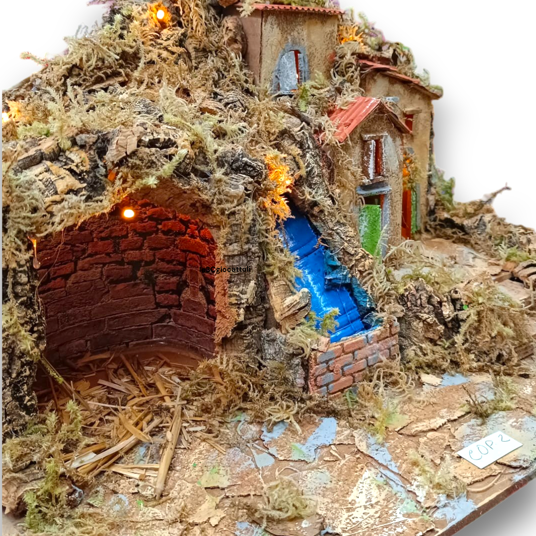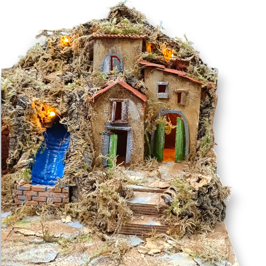 Il Presepe con Cascata e Casa 54x35x40 è un capolavoro artigianale della tradizione napoletana, pensato per chi desidera un presepe autentico e dettagliato. Questo Presepe con Cascata e Casa 54x35x40 presenta un paesaggio su un unico livello, con una grotta ampia al piano terra, perfetta per ospitare la Natività. La cascata funzionante aggiunge un tocco di realismo al Presepe con Cascata e Casa 54x35x40, mentre il gruppo di case per pastori, adatte a statuine da 10 cm, completa la scena con un’atmosfera suggestiva.