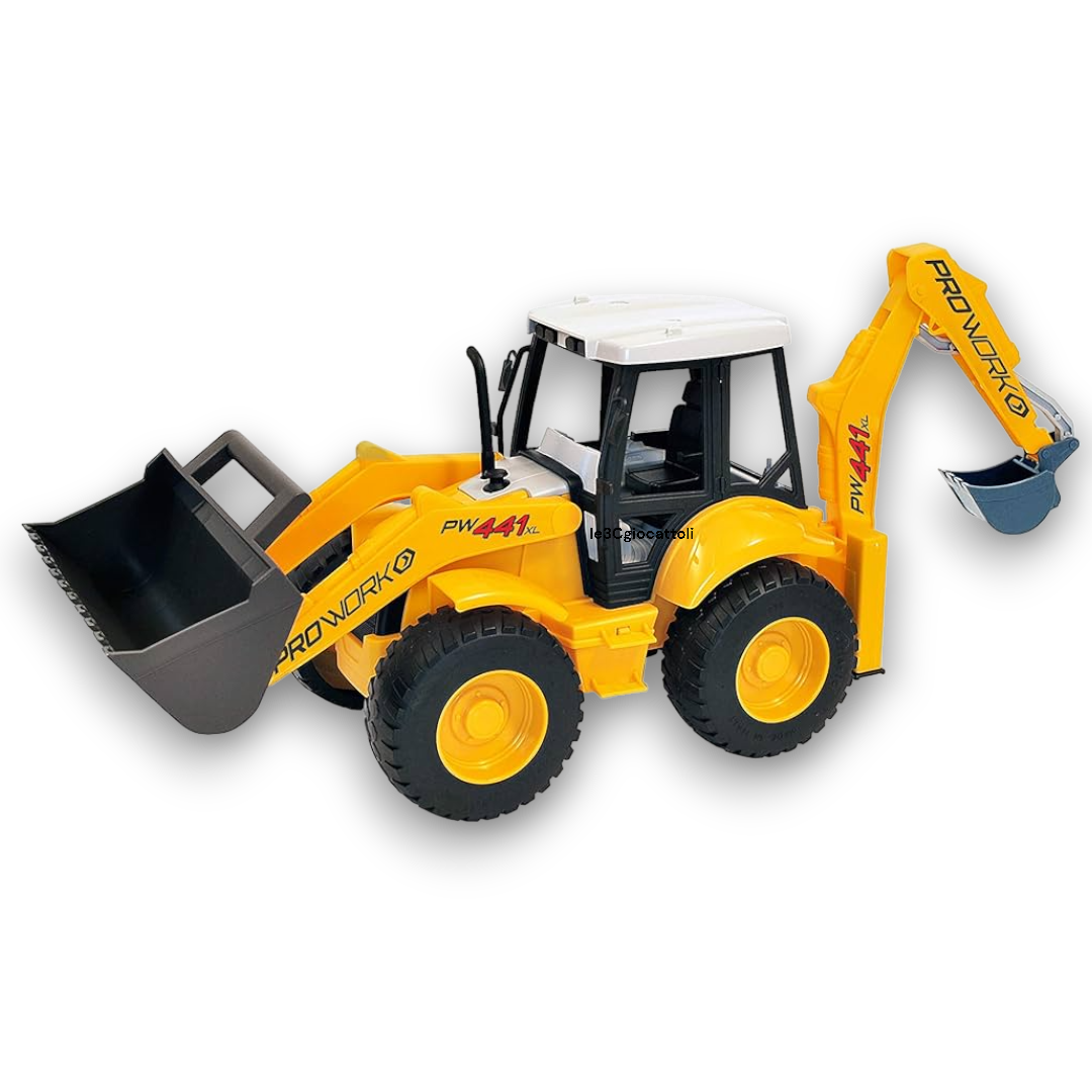 - Funzionalità Multifunzione: Dotata di una pala caricatrice frontale e un escavatore posteriore, la Ruspa Terna Prowork Adriatic permette ai bambini di simulare una varietà di attività di costruzione e scavo, proprio come una vera terna.