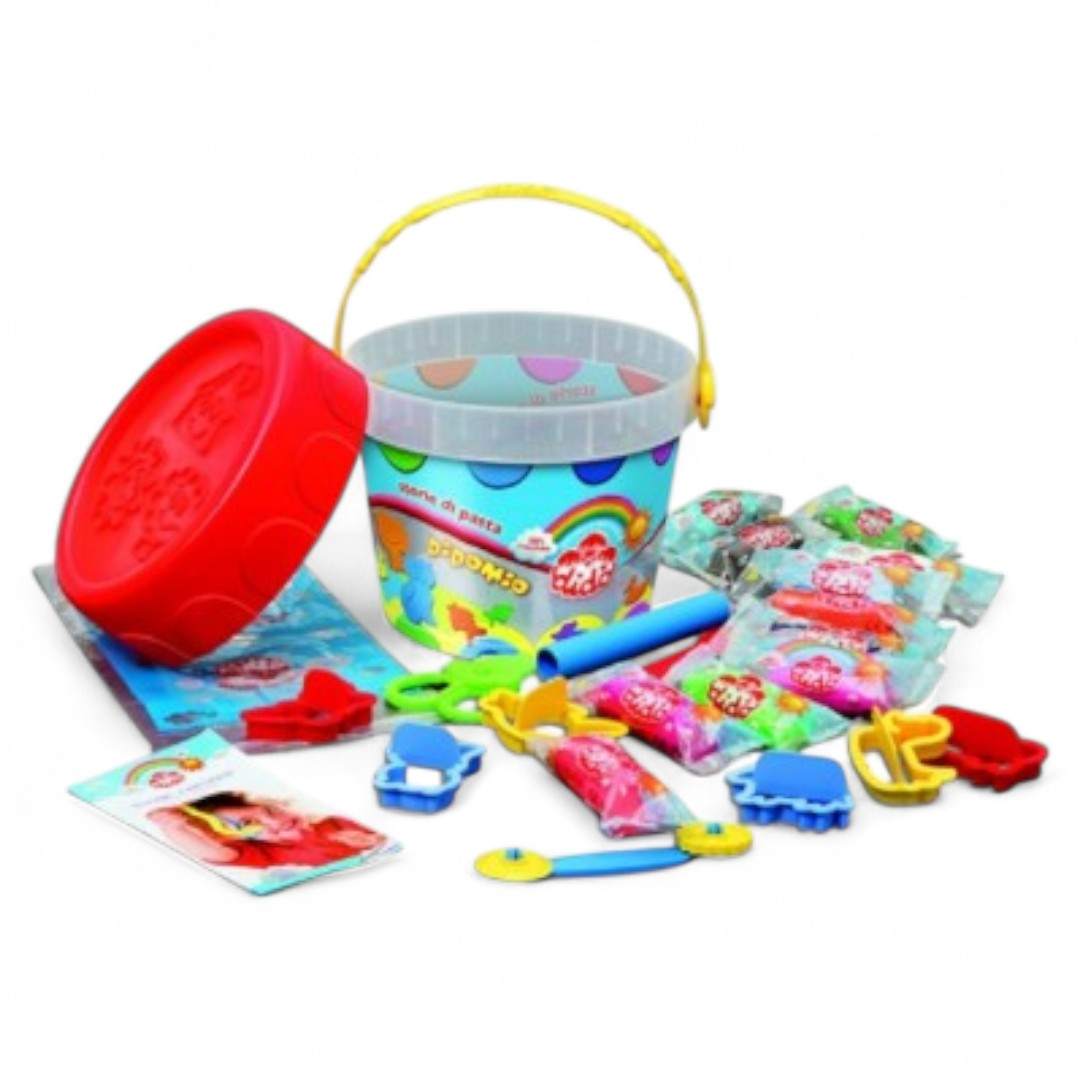 Scopri il mondo creativo del Secchiello Didomio Storie di Pasta, sicuro e testato, perfetto per bambini dai 2 anni in poi. Il Secchiello Didomio Storie di Pasta contiene 12 salsicciotti di plastilina colorata e tante formine per modellare.