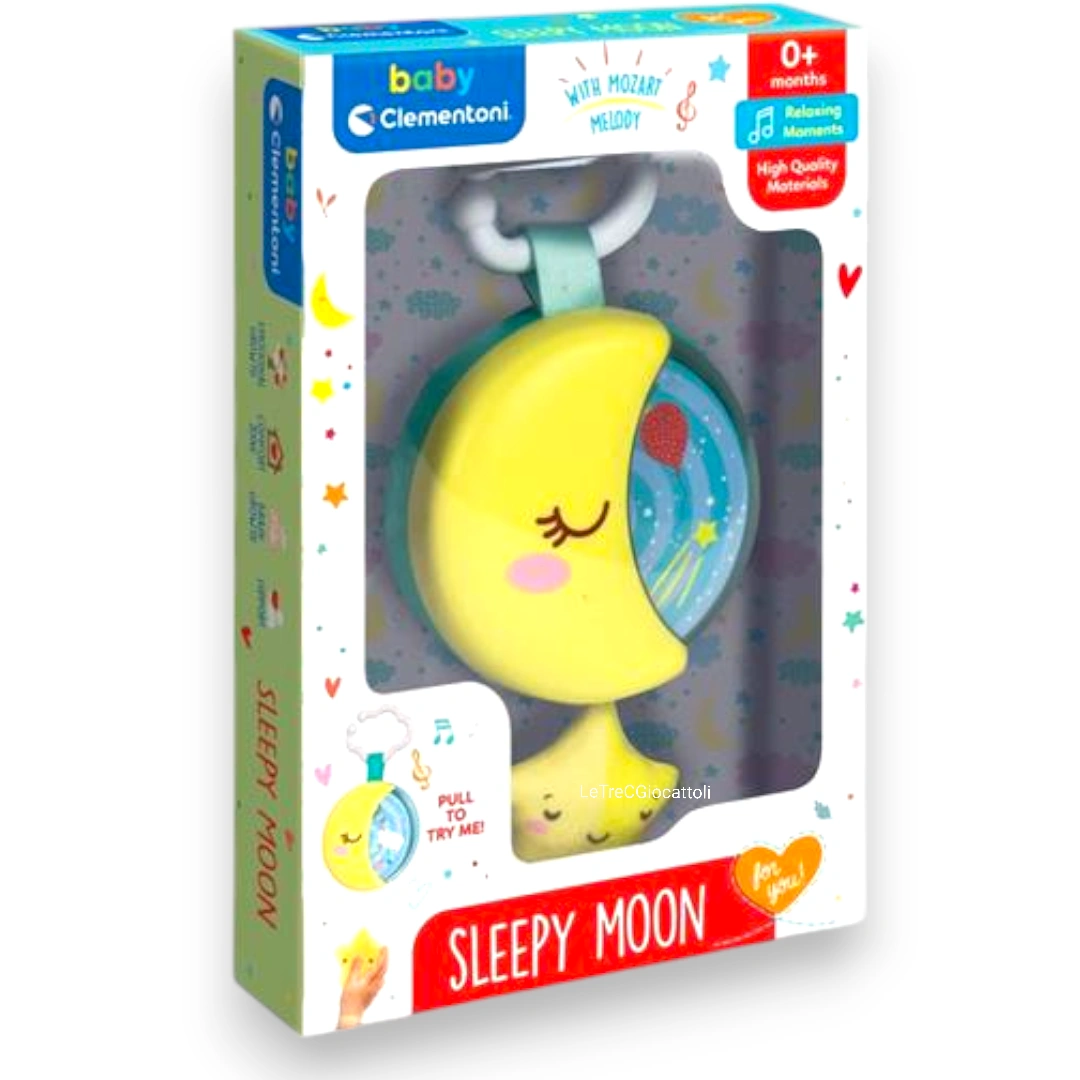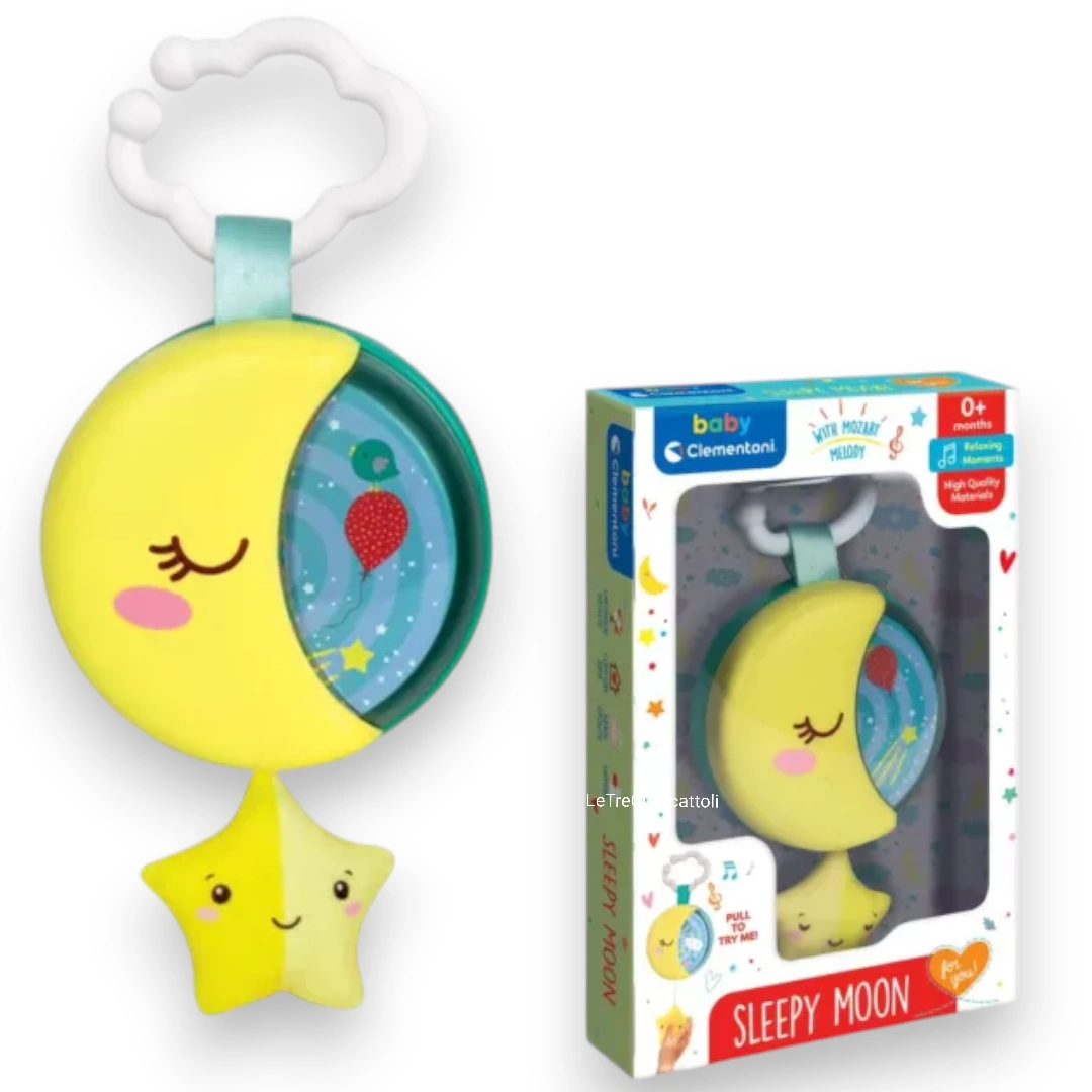 Il Sleepy Moon Carillon Baby Clementoni è il compagno ideale per i neonati sin dai primi giorni di vita, progettato per creare un’atmosfera di tranquillità e relax. Questo dolce Sleepy Moon Carillon Baby Clementoni a forma di luna, realizzato da Clementoni, è dotato di melodie rilassanti e musiche di Mozart, studiate appositamente per calmare e accompagnare il bambino verso un sonno sereno. Il Sleepy Moon Carillon Baby Clementoni può essere facilmente fissato alla culla o al lettino, garantendo che il bambino sia cullato da suoni dolci e rassicuranti.