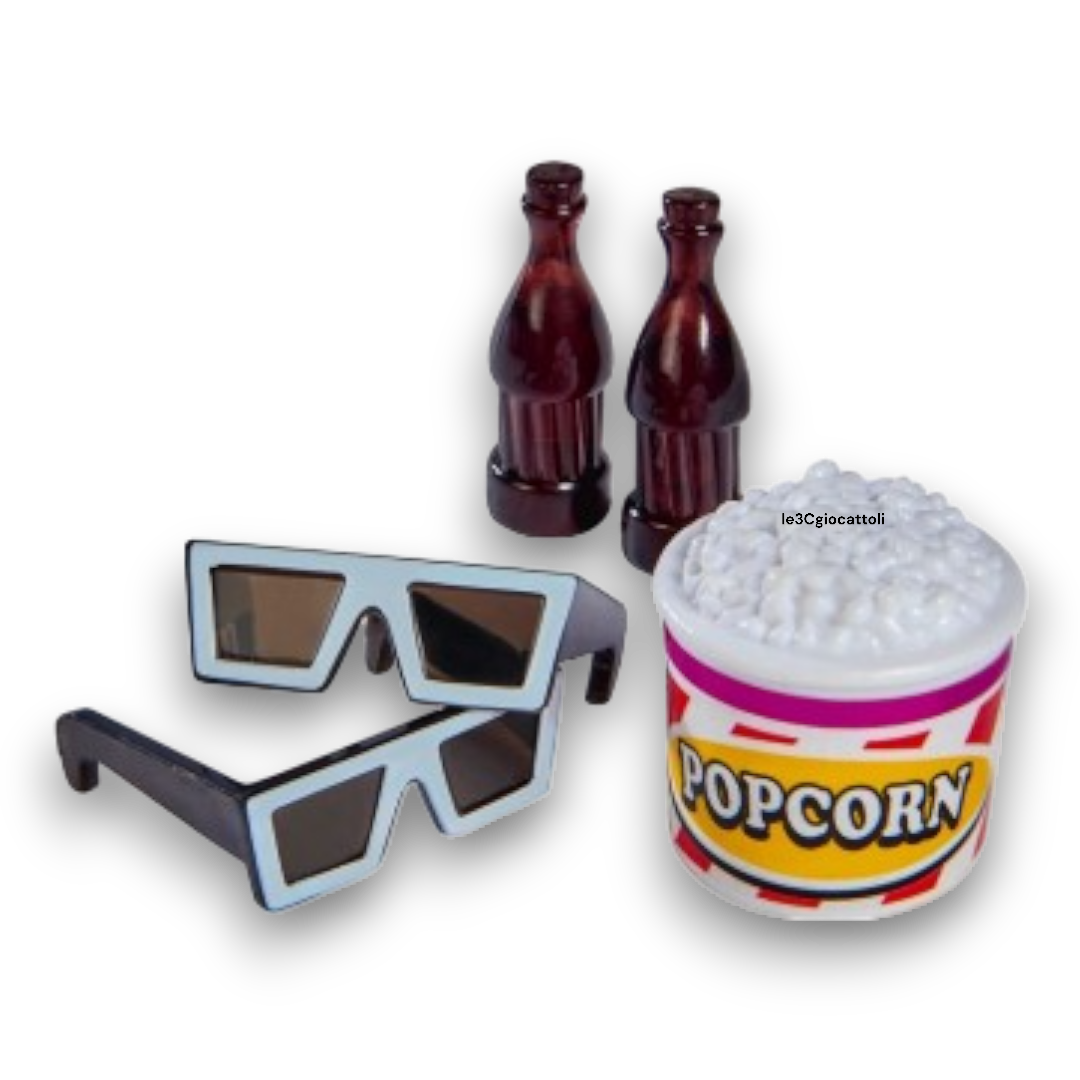 Gli accessori aggiuntivi, come occhiali 3D e snack, rendono il gioco con Steffi Love e Kalvin al cinema ancora più realistico e divertente.