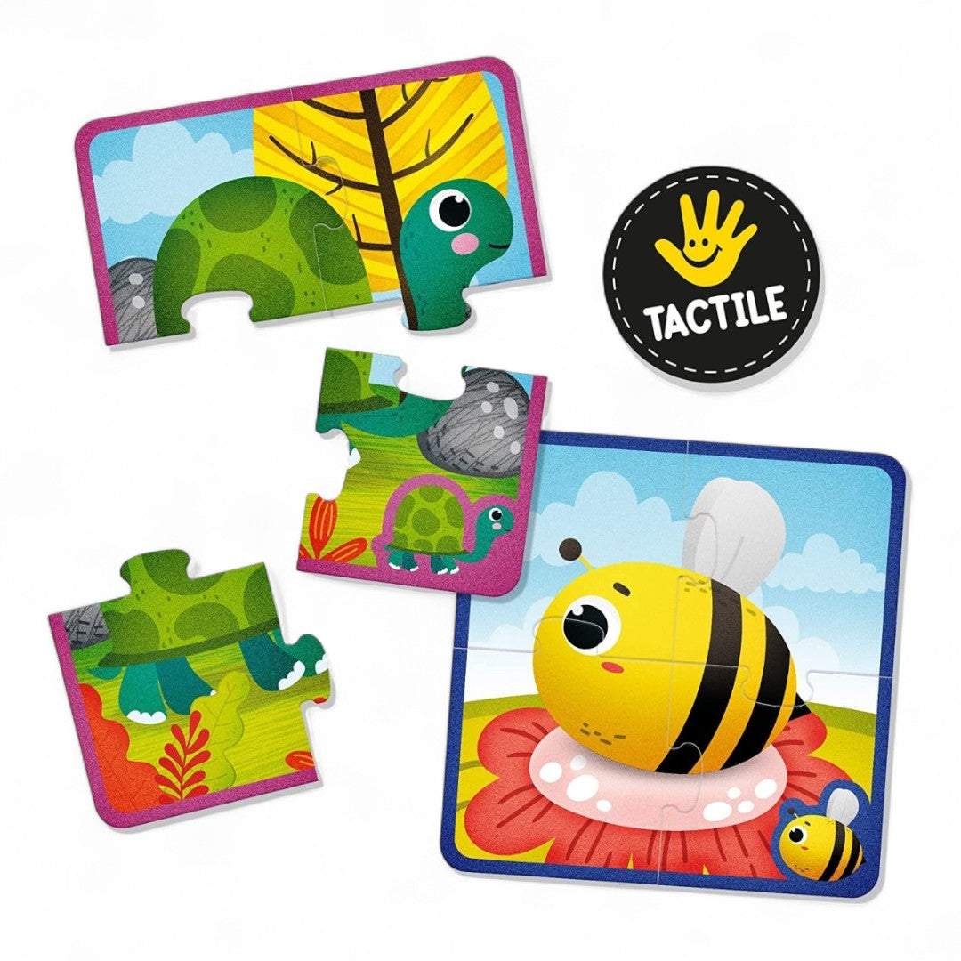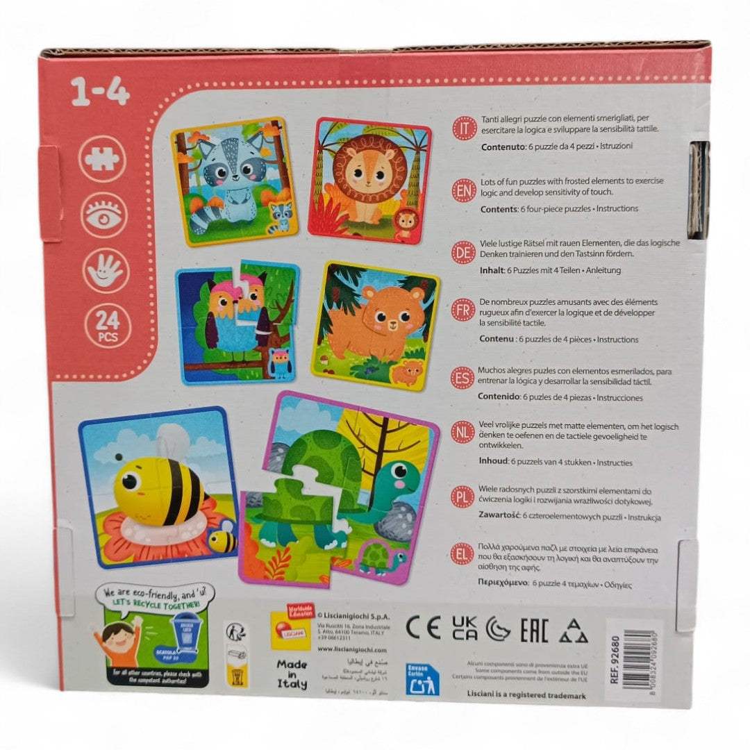 Stimola i sensi con Touch Puzzle Montessori Baby, il gioco educativo Lisciani pensato per bambini da 1 a 4 anni. Con Touch Puzzle Montessori Baby, i più piccoli sviluppano tatto, memoria e logica grazie a pezzi grandi e resistenti con superfici tattili diverse.