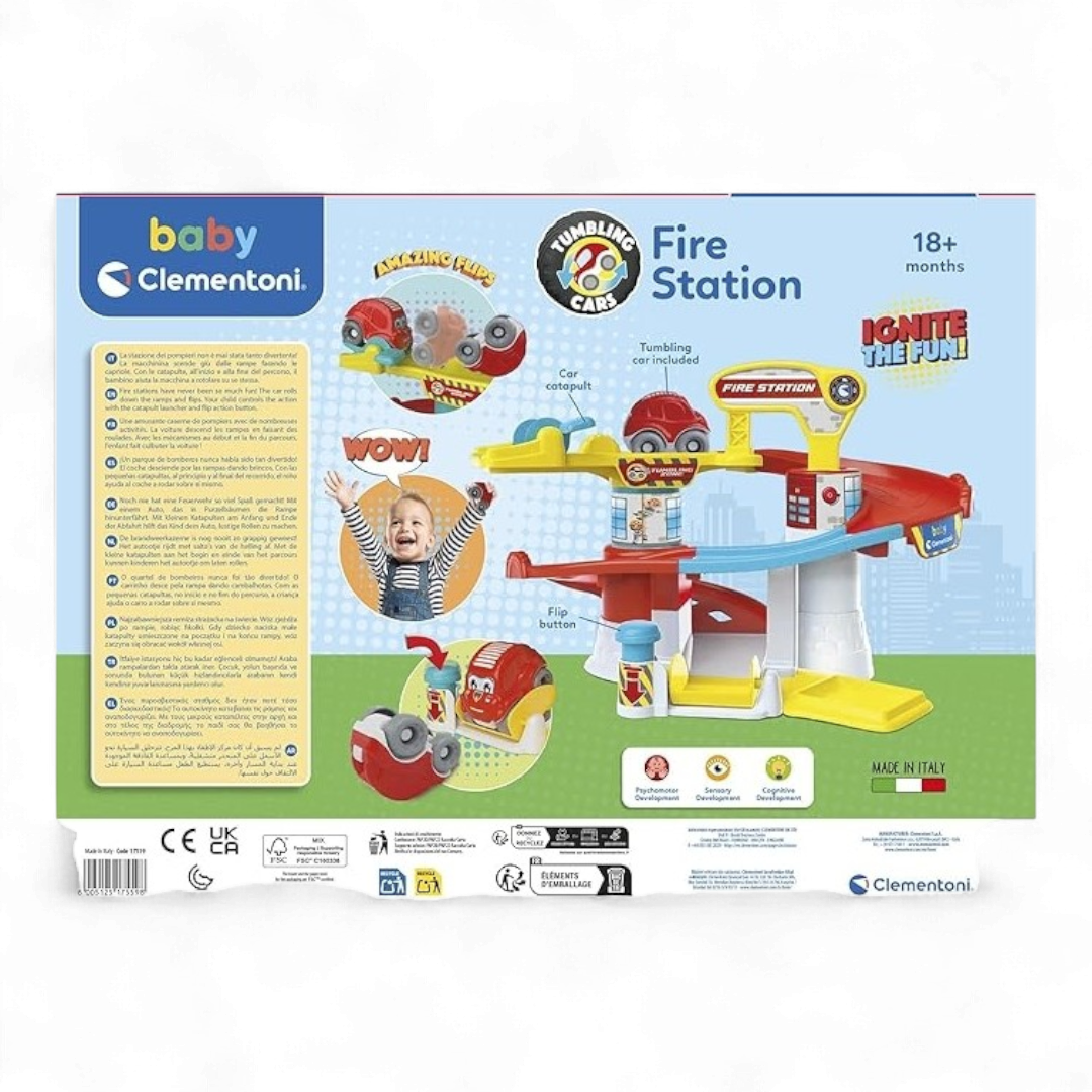 Il Tumbling Cars Stazione dei Pompieri Clementoni è un gioco interattivo e dinamico pensato per i bambini dai 18 mesi in poi. Il Tumbling Cars Stazione dei Pompieri Clementoni include una pista divertente con leve e rampe che permettono alle macchinine di compiere acrobazie e capriole spettacolari.
