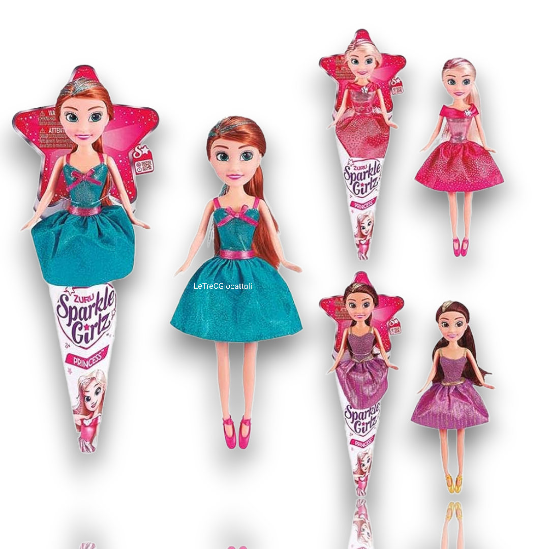 Zuru Sparkle Girlz Princess é diponibile in diversi modelli in viola, rosa e verde, presenta un abbigliamento regale e dettagli unici. I capelli acconciati in stile e gli abiti eleganti catturano l'essenza delle principesse. I bambini possono inventare storie incantevoli, creare balli e avventure regali con queste bambole.